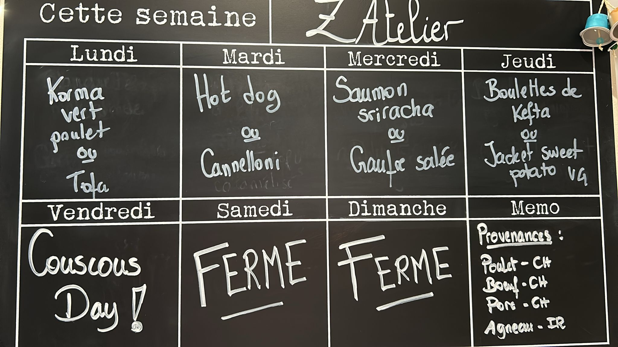 Un plat du jour, accompagné de 2 ou 3 entrées et desserts, ainsi qu’une selection de boisson maison.