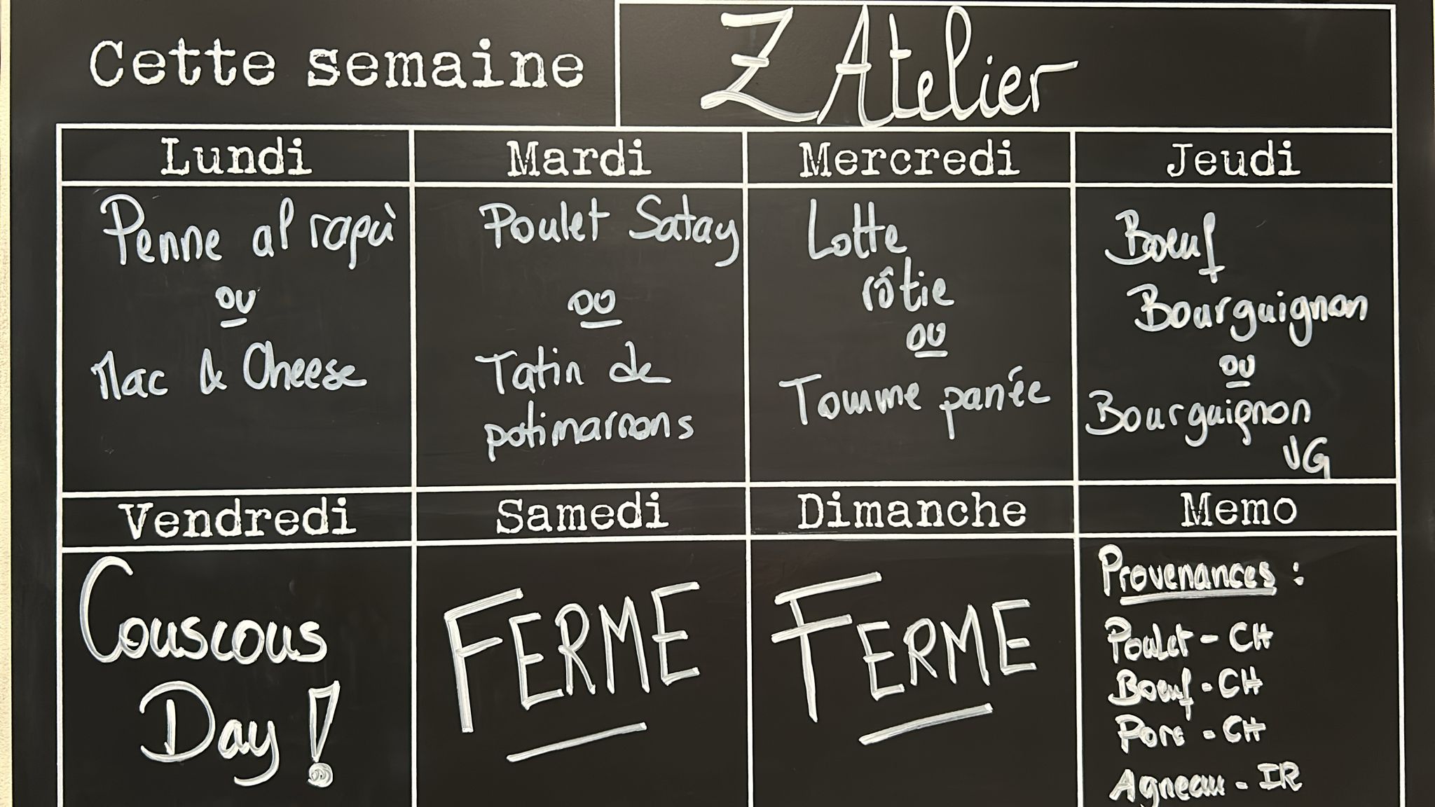 Un plat du jour, accompagné de 2 ou 3 entrées et desserts, ainsi qu’une selection de boisson maison.