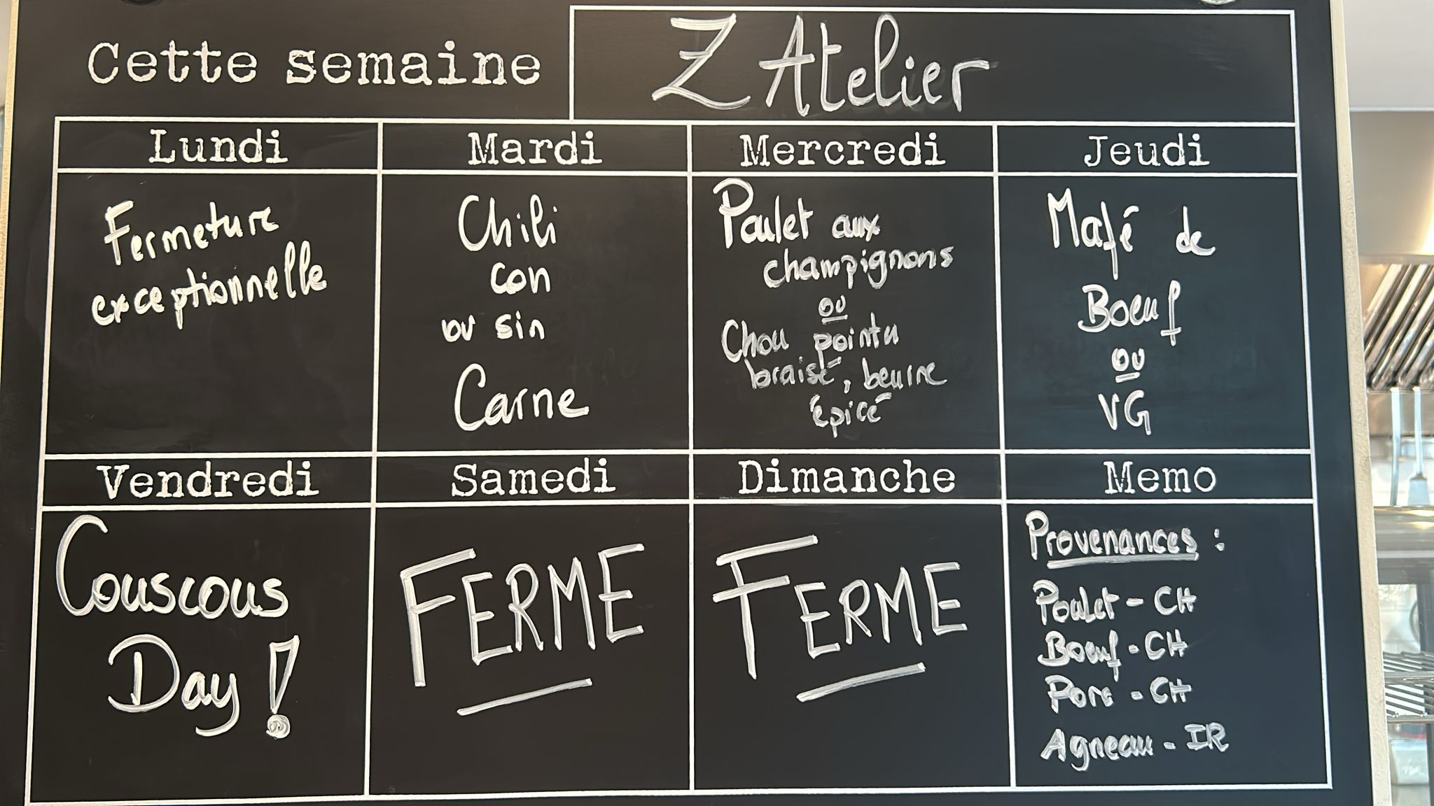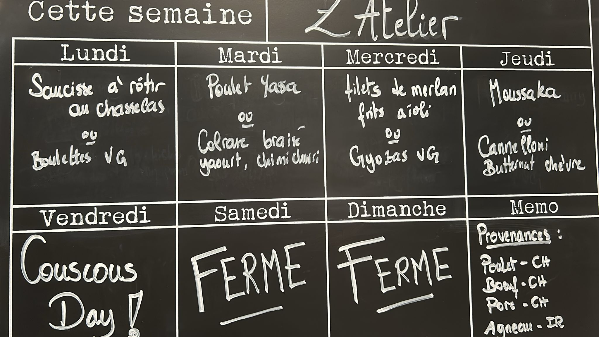 Chaque semaine, nous vous concoctons un nouveau menu. Pour plus de détails, cliquer ici